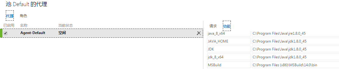 你下载回来的Agent已经包含了相关的系统变量,如果想像VSTS那样,就需要在服务器上去配置了。我这儿只 安了Java。