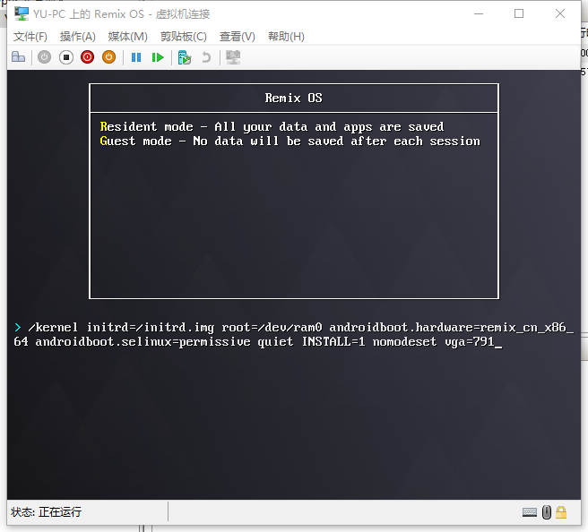 kernel /android-2016-10-24/kernel vga=791 root=/dev/ram0 androidboot.hardware=remix_cn_x86_64 androidboot.selinux=permissive nomodeset DEBUG=2 SRC=/android-2016-10-24