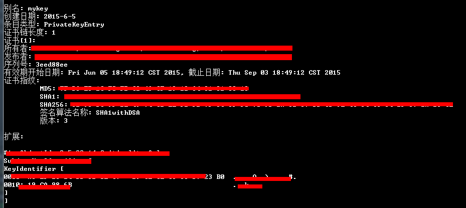 512 ~ 1024 密钥的长度为512至1024之间(64的倍数)(当使用-genkeypair和-keyalg DSA参数)